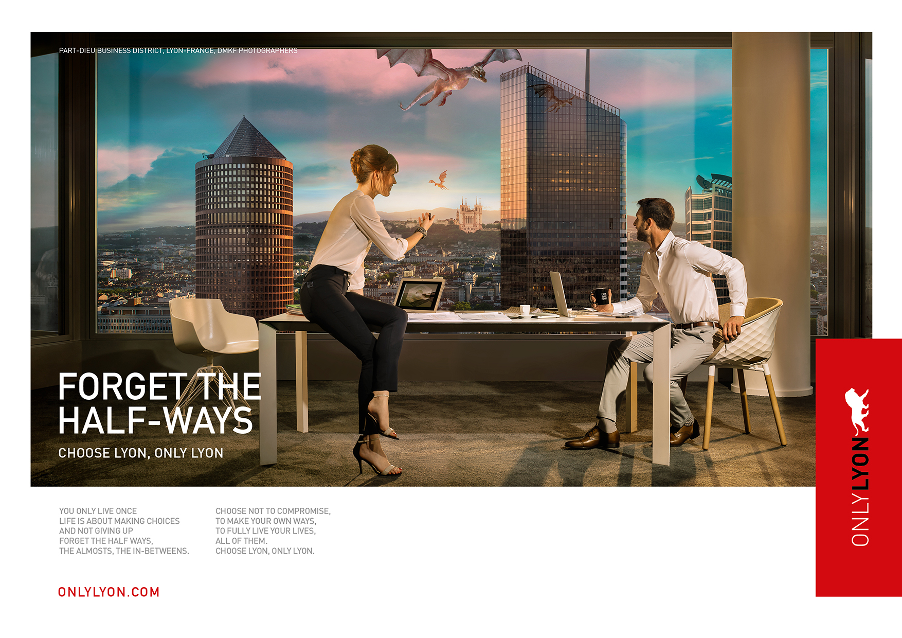 Le studio DMKF a réalisé la dernière campagne de communication d’OnlyLyon. En parallèle avec tous les acteurs de la métropole, de la ville et l’équipe d’OnlyLyon nous avons conçu et mis au point des visuels sur mesure.