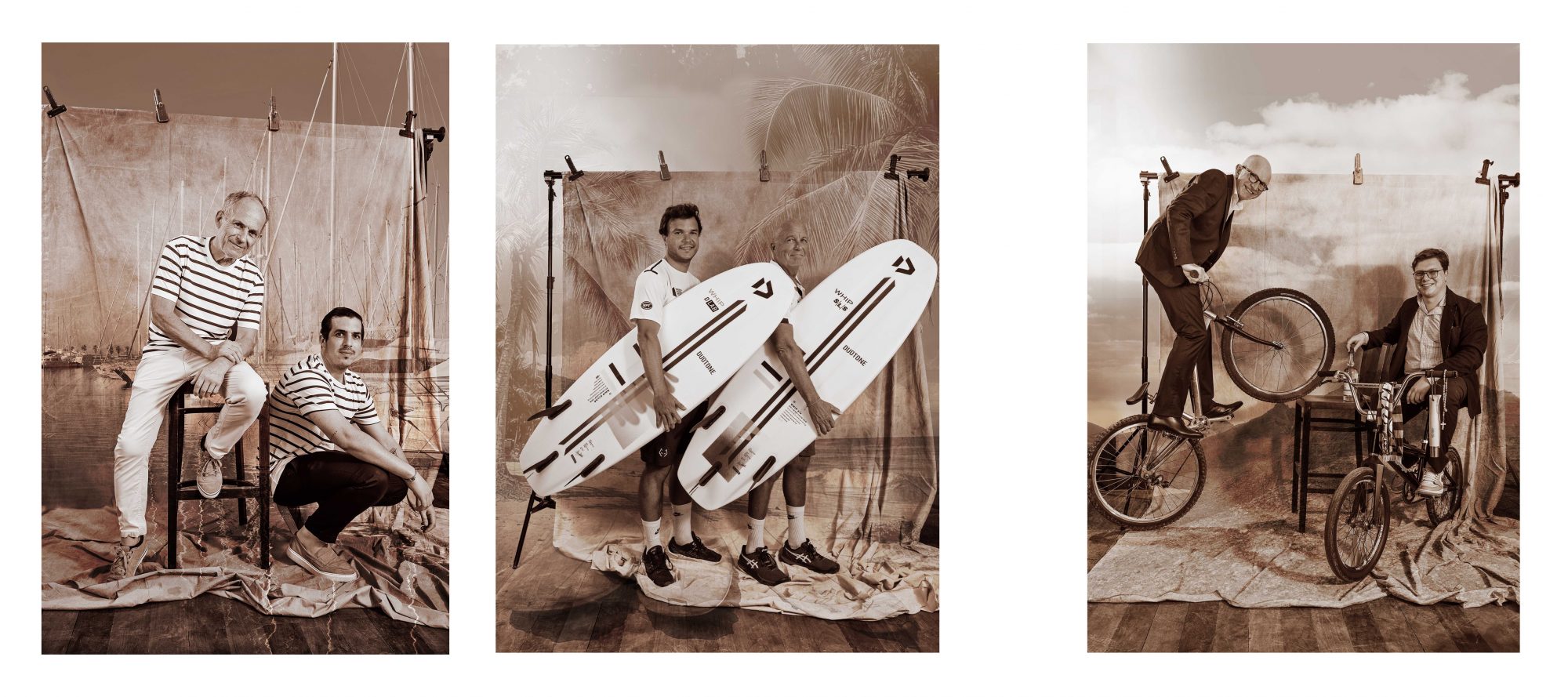 que le père transmet souvent ses passions à ses enfants. Pour renforcer l’univers de chacun, un décor se superpose en arrière-plan.