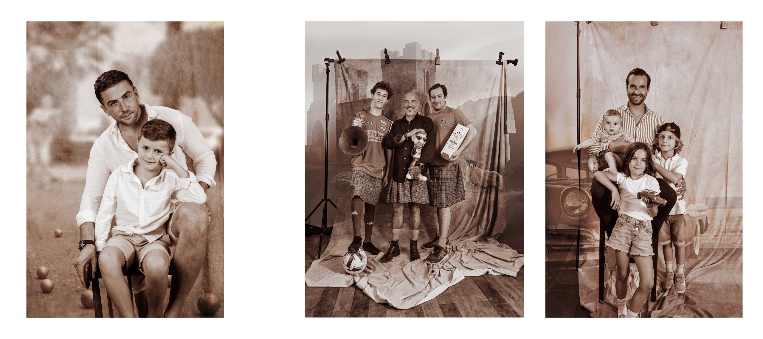 Une série de portraits destinés à illustrer le concept d’un nouveau restaurant : PAPA’, père et fille(s) et fils