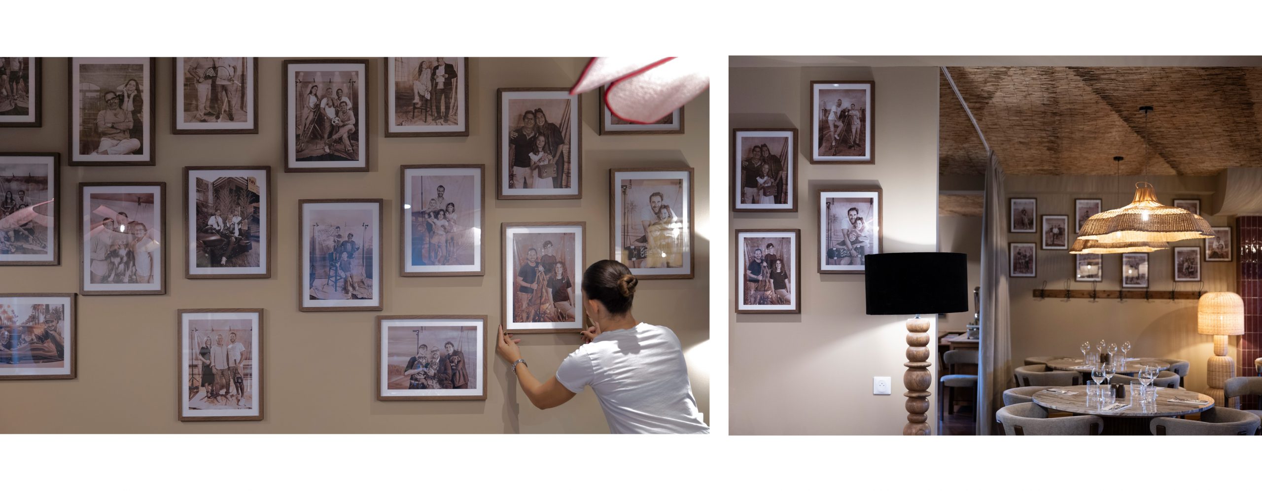 Les images soigneusement encadrées ornent les murs du restaurant.